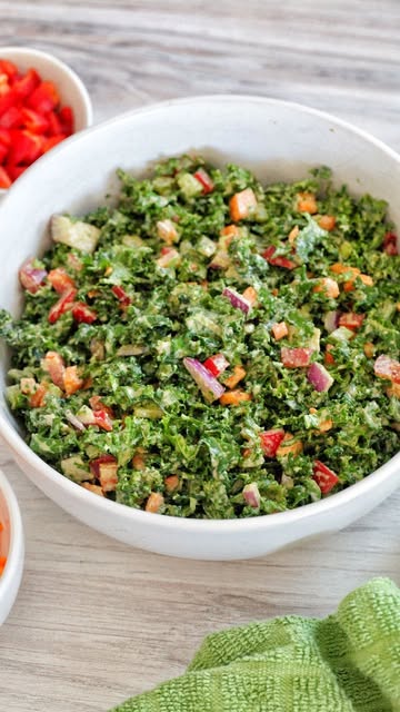 This Crispy kale salad recipe is deliciously packed full of flavor. The Whole foods garlic tahini dressing adds richness, creaminess, and depth of flavor to this recipe.