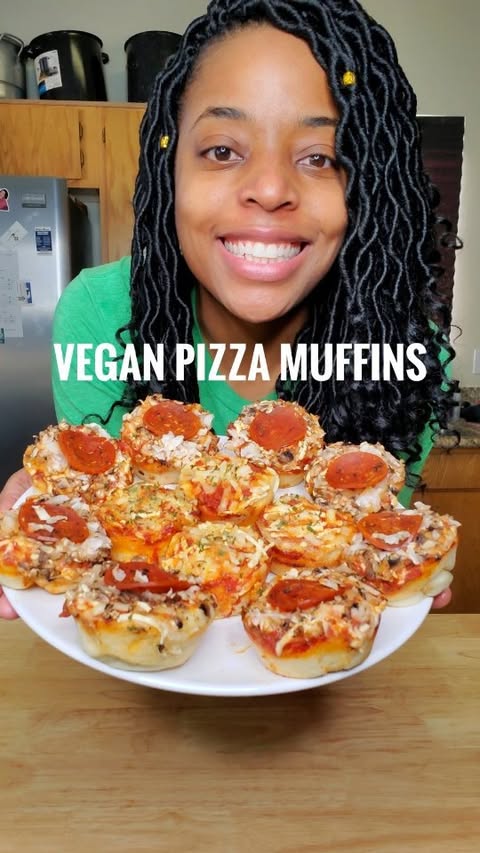 Delicious bite-sized Pizza Muffins made from pizza dough, topped with pizza sauce, vegan cheese, and optional toppings such as onion and mushroom. Ideal for game day parties.