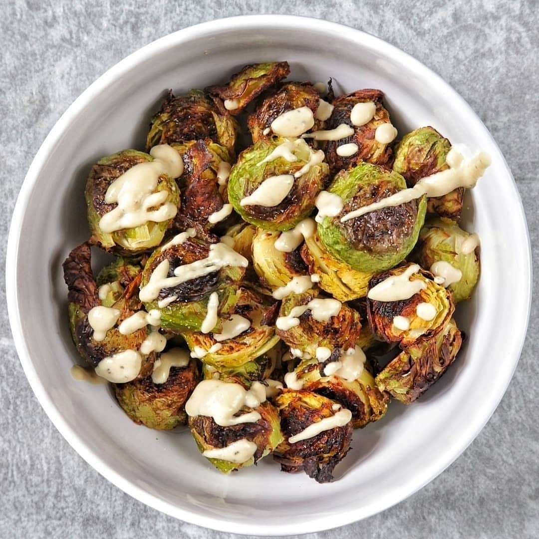 Roasted Brussels Sprouts with Hummus Dressing | Vegan What